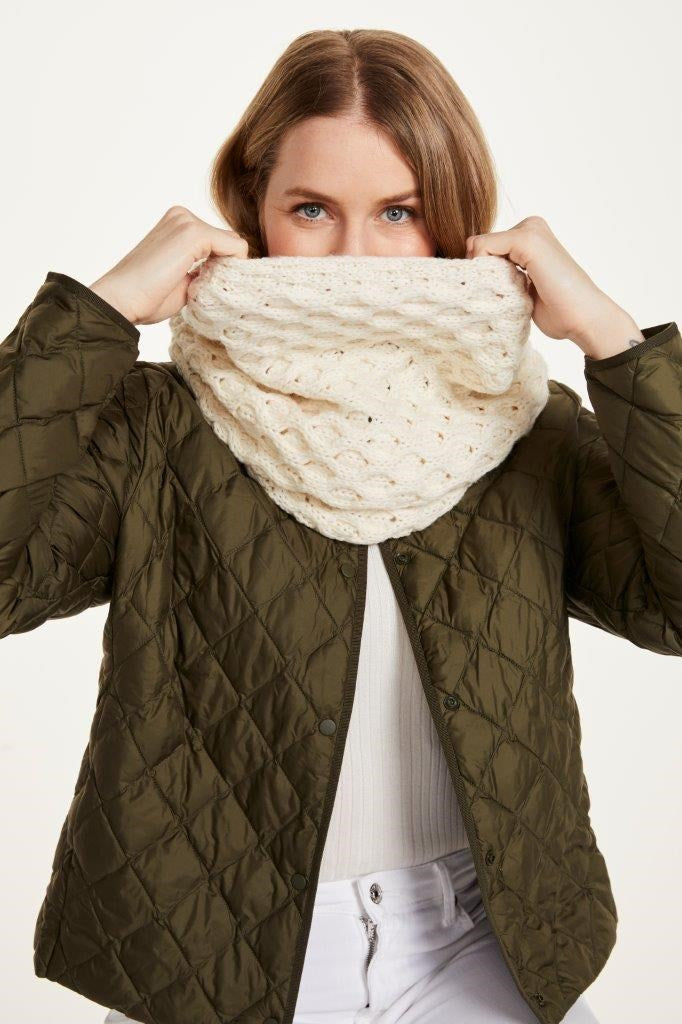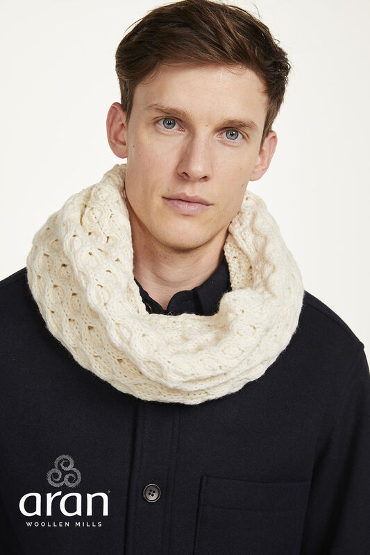 Stylish scarf made of merino wool from the Irish brand Aran Woolen Mills . The snood has a unique look due to the coarse honeycomb pattern.