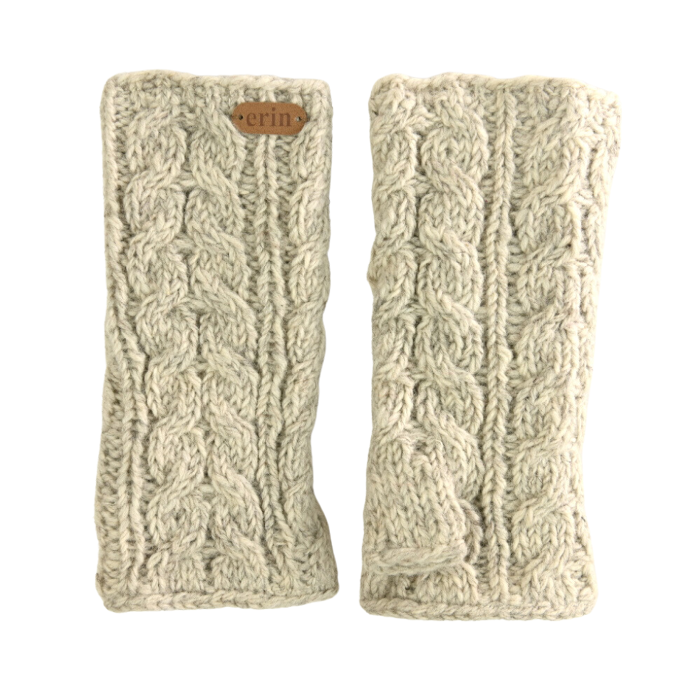 Erin Knitwear - Aran Cable hand warmers | wool wrist warmers