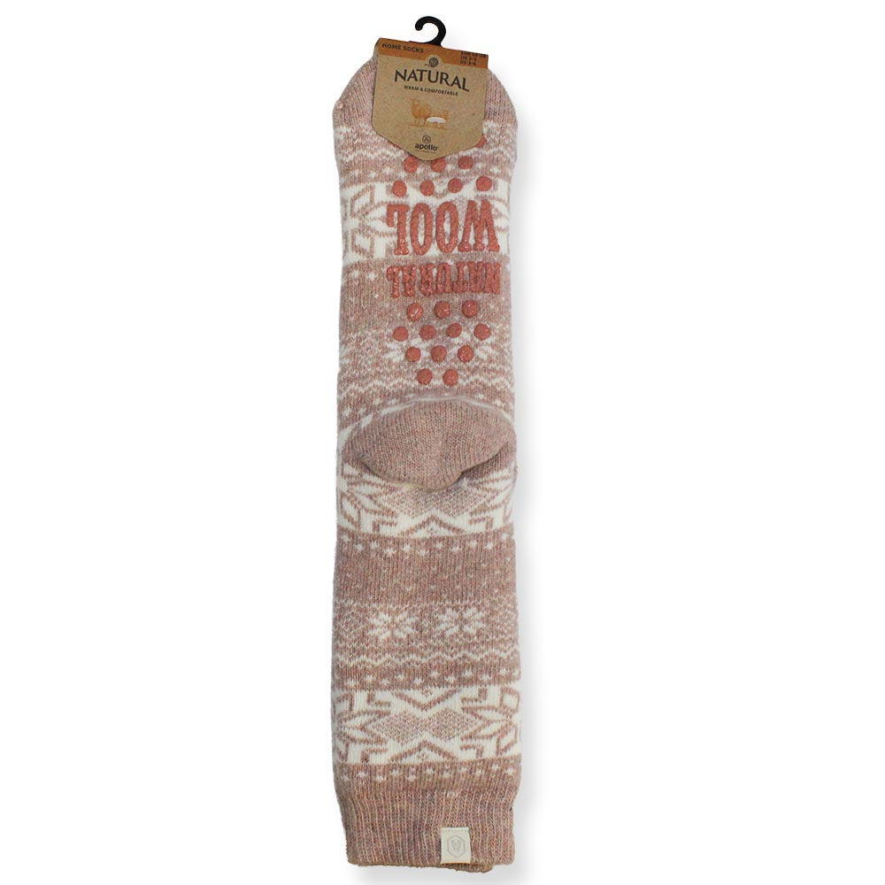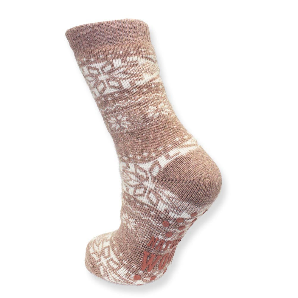 A great alternative to slippers. Equipped with anti-slip studs on the bottom, so that you do not easily slip on smooth surfaces. The big advantage of wool socks: wool not only warms, but can also absorb moisture excellently, without making the feet feel clammy or cold.