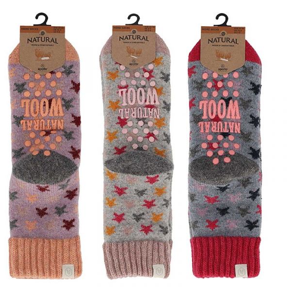 A great alternative to slippers. Equipped with anti-slip studs on the bottom, so that you do not easily slip on smooth surfaces. The big advantage of wool socks: wool not only warms, but can also absorb moisture excellently, without making the feet feel clammy or cold.