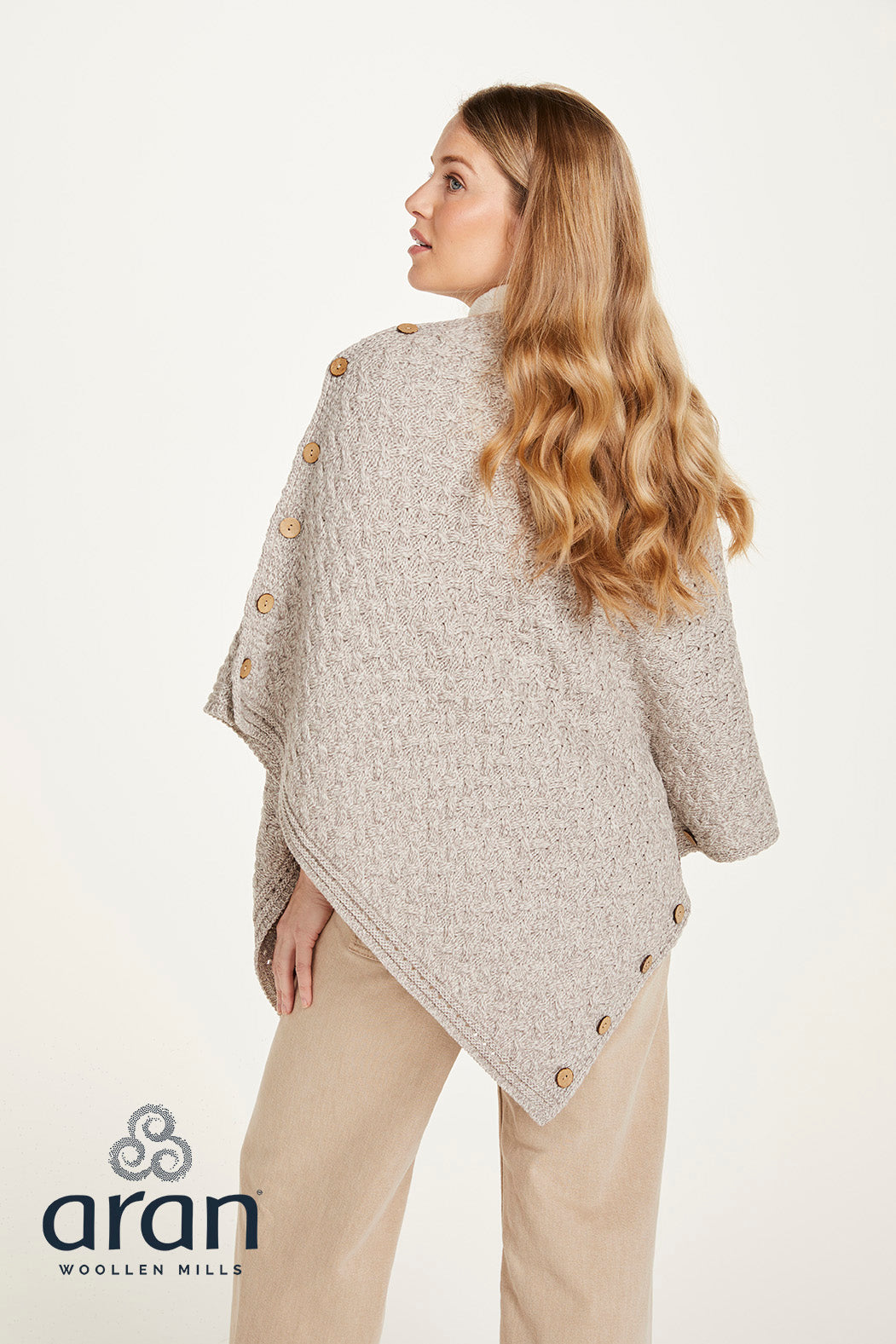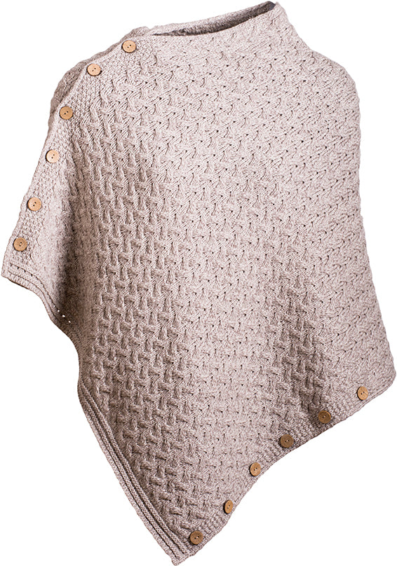 An elegant, stylish poncho, made from 100% supersoft merino wool, knitted in a traditional braiding stitch. Very soft and versatile; This poncho can be buttoned in different ways to be worn as a bolero, a poncho or a shawl. Suitable for all seasons! Whether you wear this poncho in winter for an extra layer of pleasant warmth or on a cool summer evening in the garden, you will add a touch of class to any outfit.
