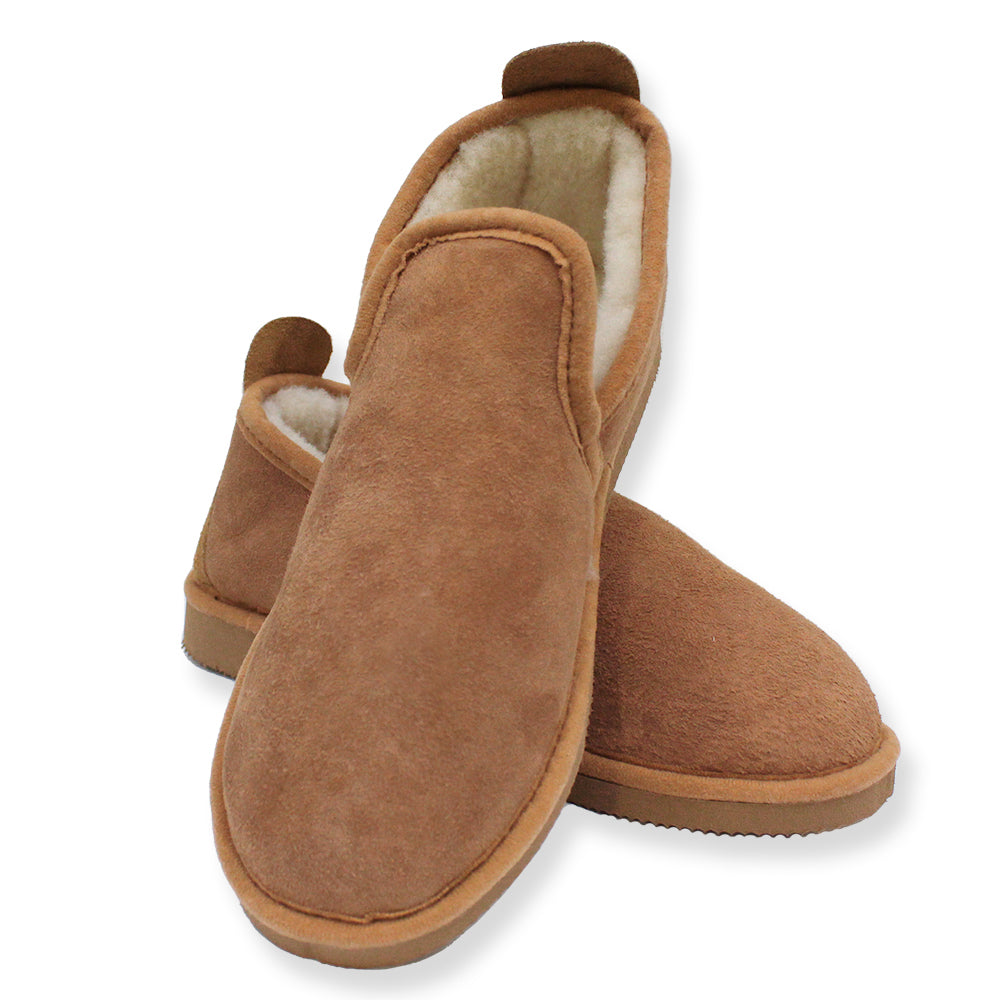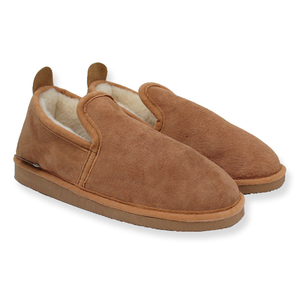 Schaffell-Slipper mit weitem Einstieg.
