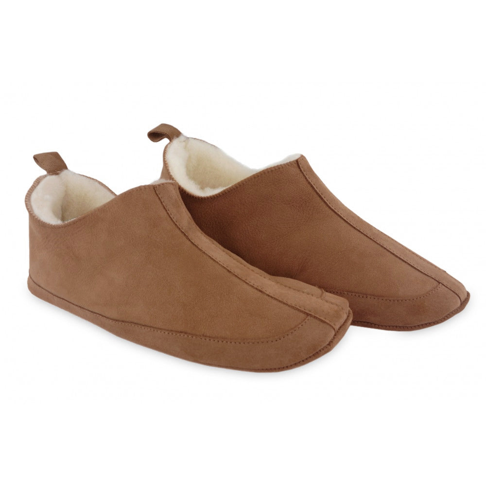 Schaffell-Hausschuhe mit breitem Spann.
