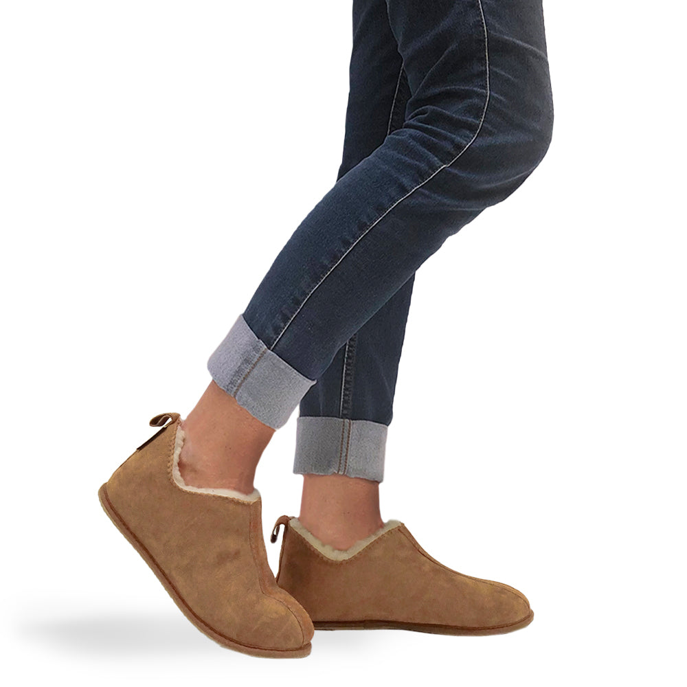 Die Senna-Schaffell-Hausschuhe bestehen aus hochwertigem Schaffell und einer dünnen, geschmeidigen Crepeline Gummisohle. Schafwolle hat viele Vorteile. Schafwolle ist feuchtigkeitsregulierend, atmungsaktiv und kann bis zu 30 % ihres Eigengewichts an Feuchtigkeit aufnehmen. Daher können Sie die Schaffellpantoffeln auch barfuß tragen. Gleichzeitig pflegt die Schafwolle auch Ihre Füße. Nach dem Gerben des Schaffells verbleibt Lanolin bzw. Wollfett in der Wolle. Dies hat eine pflegende Wirkung für Ihre Füße. Die Struktur des Schafsleders ist geschmeidig und weich, wodurch Ihre Hausschuhe äußerst bequem sind.