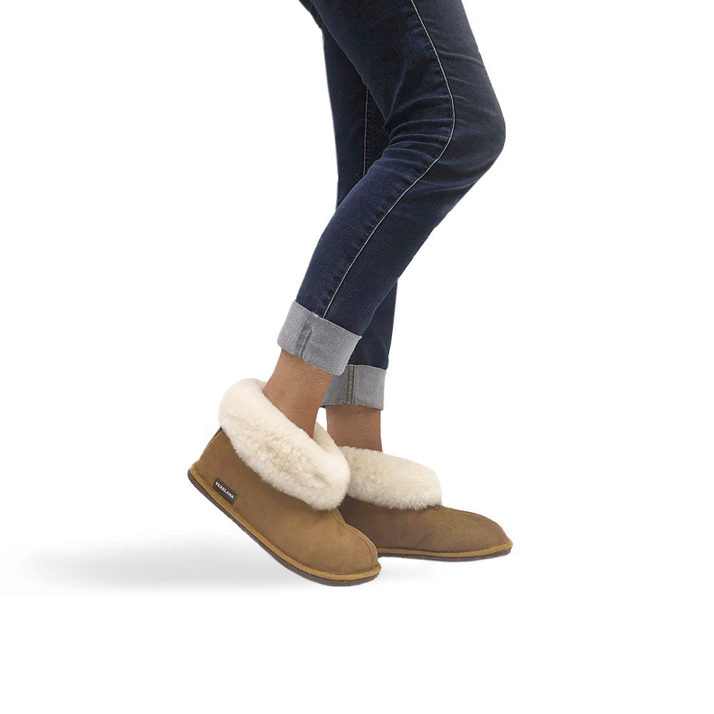 Der ideale Slipper, den Sie nach Ihren Wünschen anpassen können. Durch das Umschlagen der Fellkante werden Ihre Knöchel an kalten Tagen schön warm. Geschmeidig, weich und bequem!