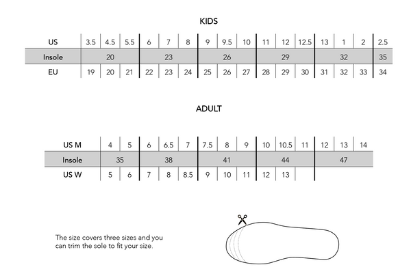 Let op: de zolen worden geleverd in de derde (grootste) maat, maar kunnen eenvoudig op een kleinere maat worden geknipt.
